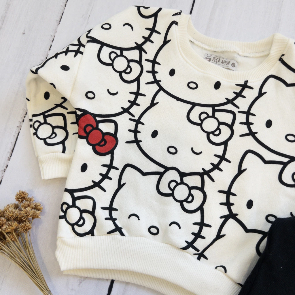 Conjunto Moletom Peluciado Hello Kitty: Conforto e Estilo para Pequenas Aventureiras!