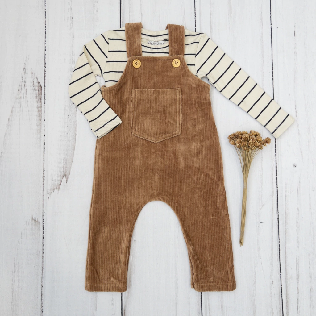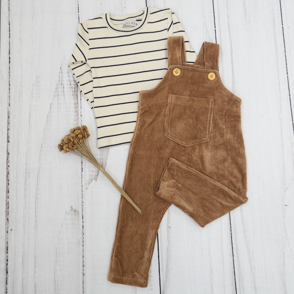 Apresentamos a Jardineira em Cotelê Super Macio e a Blusa Canelada Listrada Unissex, uma combinação perfeita de conforto e estilo para todas as idades. Este conjunto é ideal para quem busca um visual moderno e aconchegante, sem abrir mão da praticidade.