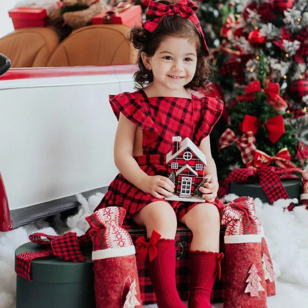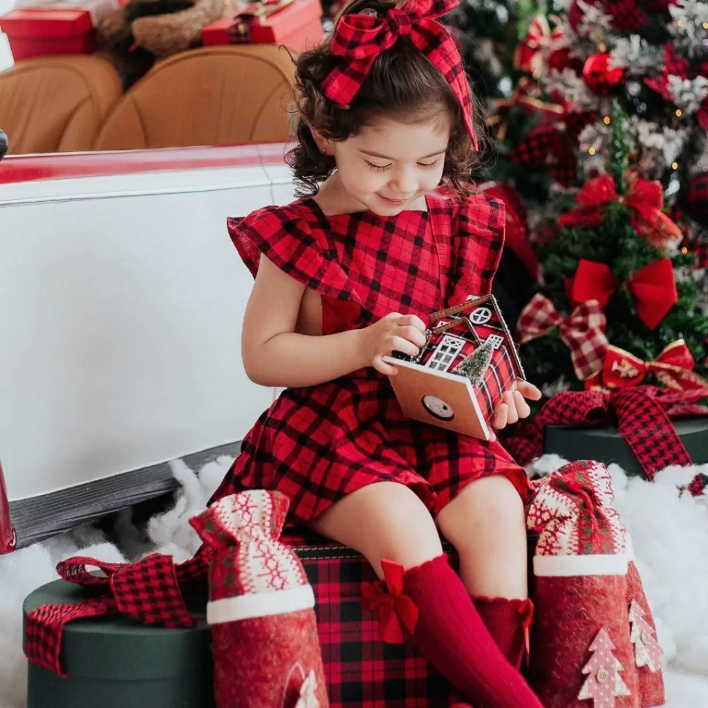 Romper Clara Natal em mistura de algodão, acompanha o laço.