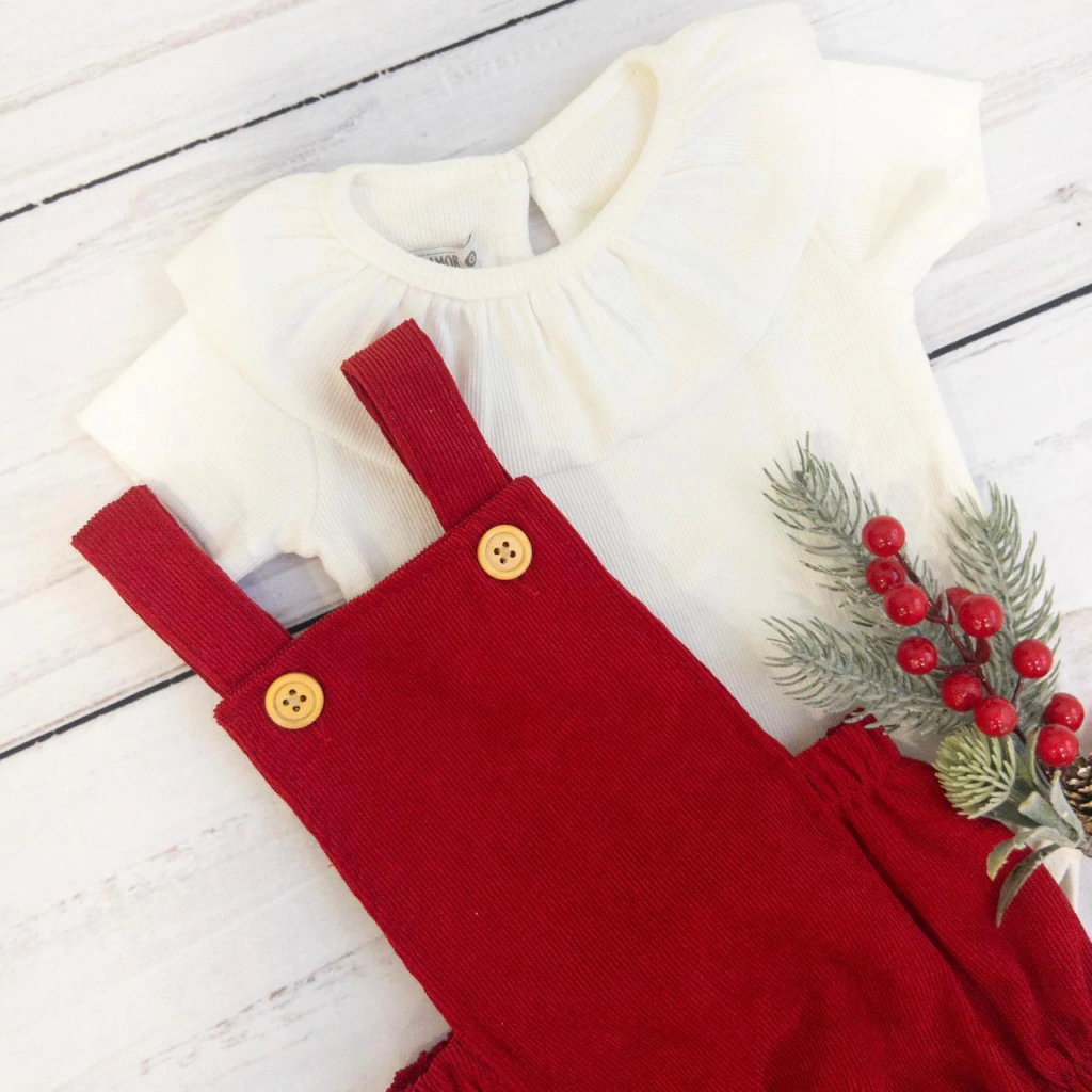Estilo que Encanta: O vermelho vibrante faz deste romper uma peça que se destaca, garantindo que sua filha seja o centro das atenções onde quer que vá.