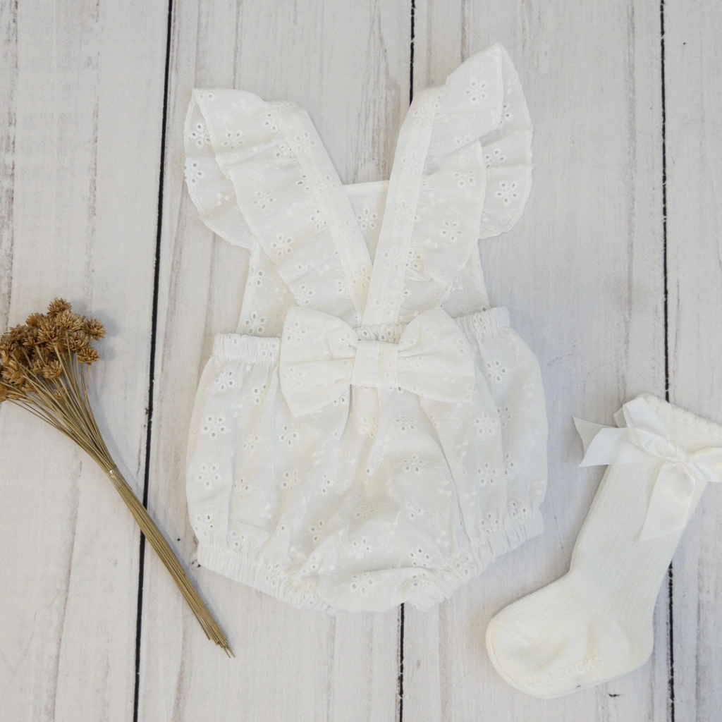 Design Charmoso: O laço nas costas adiciona um toque especial, tornando este romper uma escolha perfeita para as pequenas fashionistas.