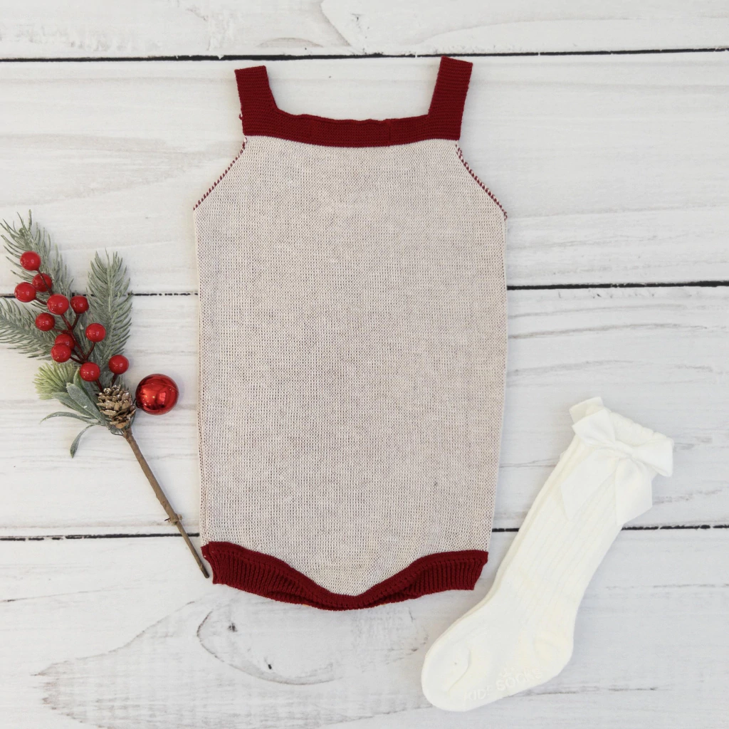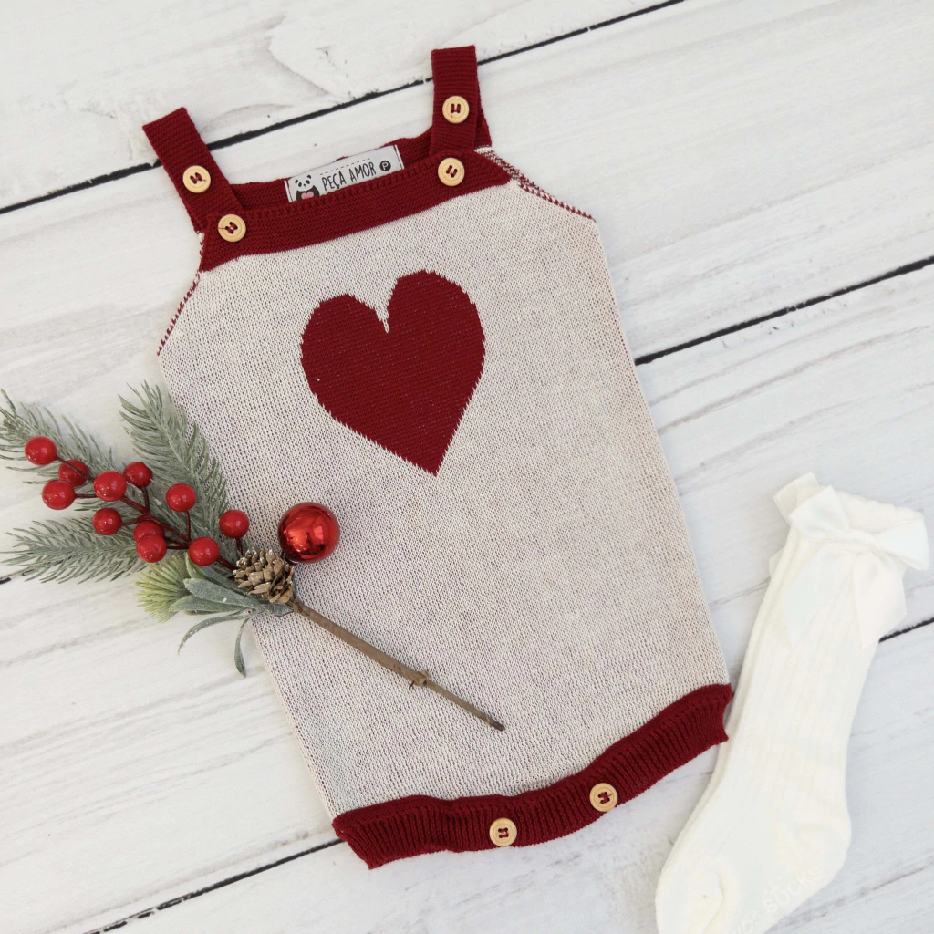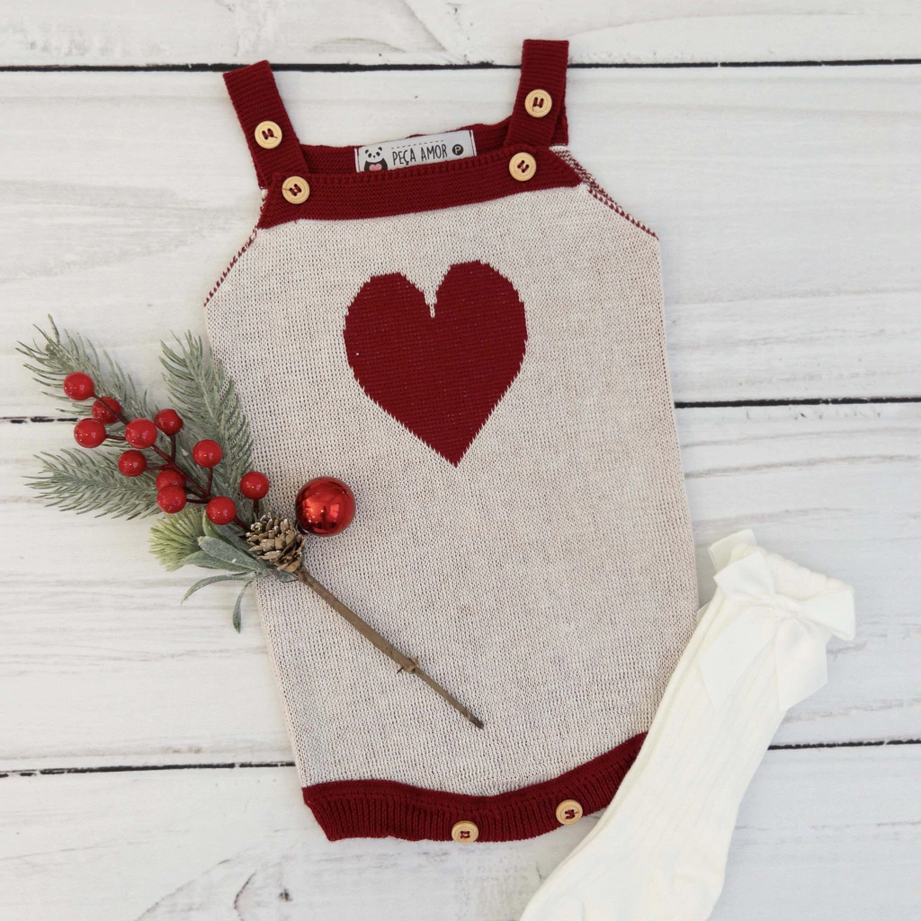 Detalhes que fazem a diferença: - Design Elegante: Fundo branco com detalhes vermelhos que destacam a peça com sofisticação e um toque de cor vibrante. - Coração Vermelho Central: Um lindo coração vermelho no meio adiciona um charme especial, simbolizando todo o carinho que envolve cada momento com seu bebê. - Conforto e Flexibilidade: O tricô garante uma textura suave e flexível, perfeita para o conforto das pequenas aventuras diárias.