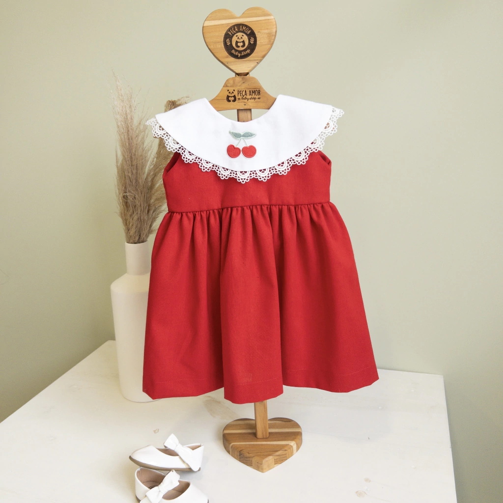 Bordado de Cereja: O delicado bordado de cereja na parte frontal do vestido adiciona um toque de charme e originalidade, fazendo sua pequena se destacar em qualquer ocasião.